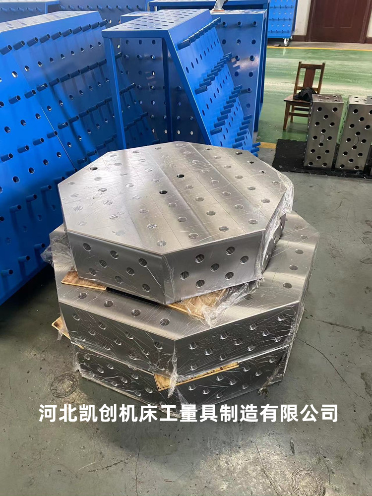 三維焊接平臺不僅僅是一個簡單的臺子,它的工作面跟上面的孔都是有精度的,工作面的平面度為每米10絲,孔距的誤差是±0.05mm,孔直徑的誤差是+0.1,只有各項精度都達(dá)到標(biāo)準(zhǔn)才能保證焊接的誤差。